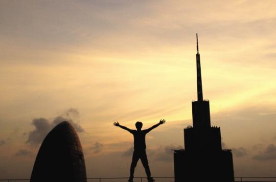 聳え立つ高層ビルは広州CBD地域のシンボルとなっている。今月初めに「高層ビルファン」のRyenさんは建築中の東塔の頂上に上った。「80後」(1980年代生まれ)のこの熱血の若者は、高さ540メートルのタワークレーンから俯瞰する形で普通の人が見ることのない風(fēng)景を見ている。彼はこの體験を過ぎたばかりの自分の誕生日のプレゼントにしている。新快報が伝えた。