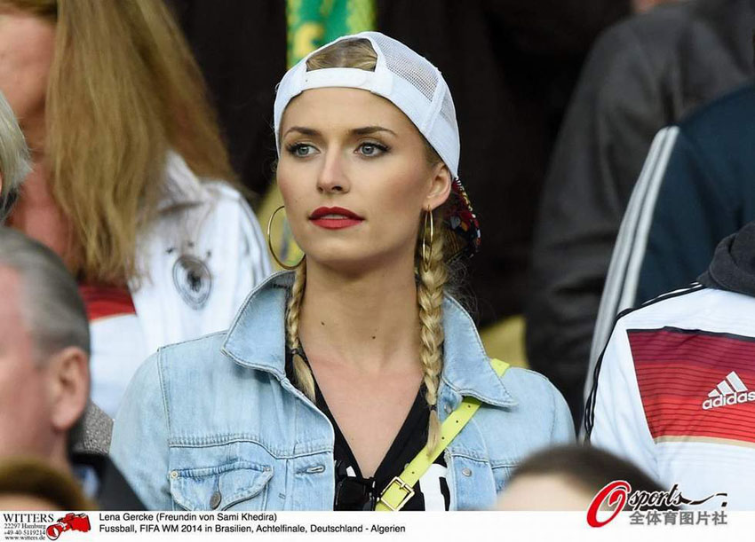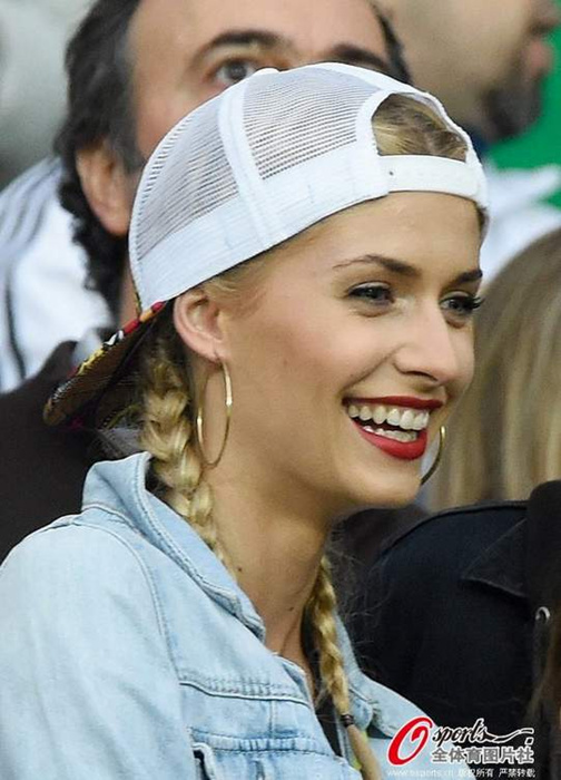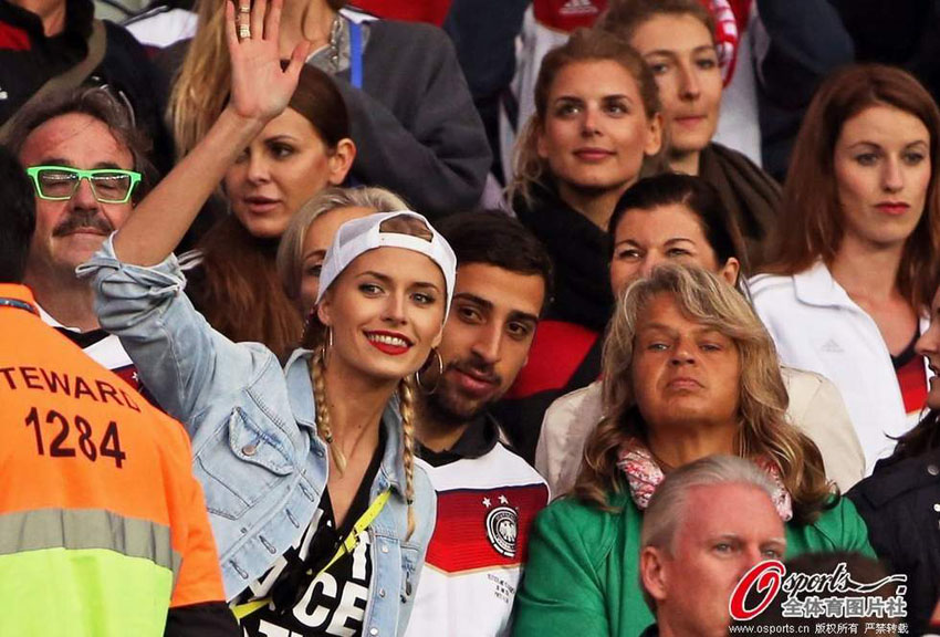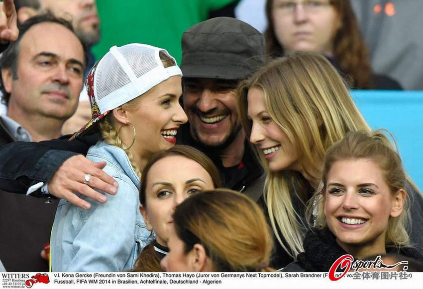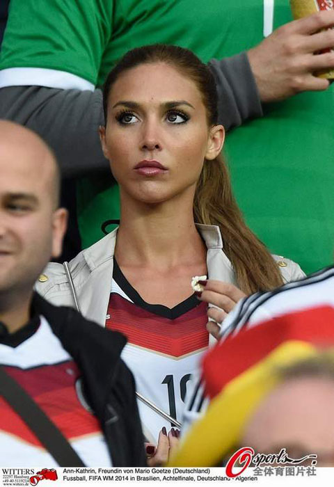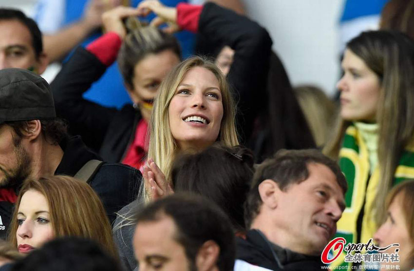 サッカー?ワールドカップ(W杯)2014ブラジル大會の決勝トーナメントの試合で、ドイツがアディショナルタイムに2―1でアルジェリアを破った。ドイツチーム選手の戀人らが會場で熱心に応援する姿が見られた。(寫真はOsports全體育が著作権所有。転載禁止)。人民網(wǎng)が伝えた。(編集YH)