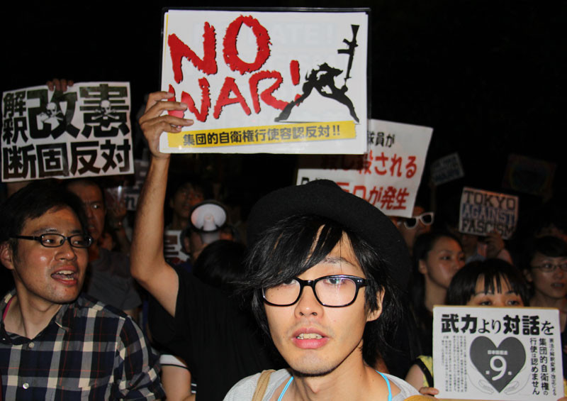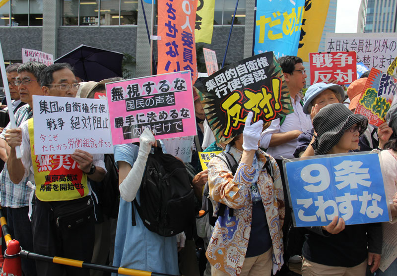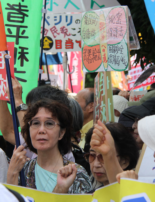 社民黨の福島瑞穂參議院議員も「閣議決定によって、日本國憲法に違反する事をしていいのか?安倍首相は戦後日本の出発點である日本國憲法第9條を破壊しようとしている。集団的自衛(wèi)権は事実上、集団的戦爭権だ。今日は日本政治にとって極めて重要な日だ。日本國民はこんな事を斷じて許さない。一緒に安倍政権を打倒しよう」と民衆(zhòng)に呼びかけた。