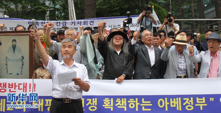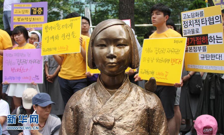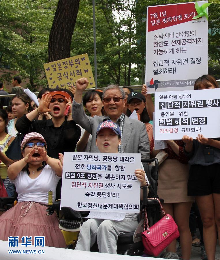 韓國民衆(zhòng)は同日、日本大使館前に集まり、慰安婦への謝罪を日本政府に要求するとともに、集団的自衛(wèi)権の行使容認(rèn)に強(qiáng)く反対した。(編集NA)