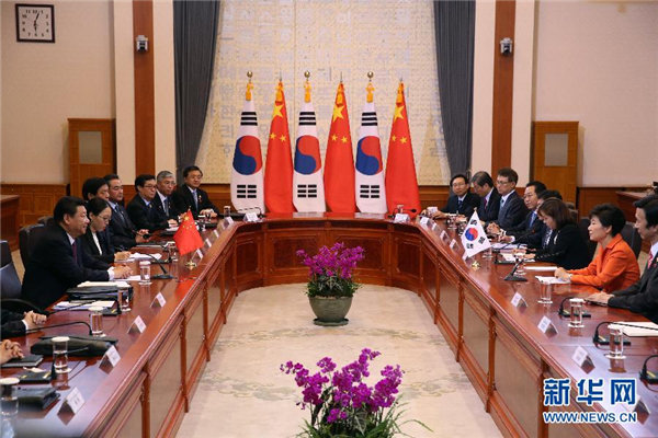 習(xí)近平國(guó)家主席は3日、韓國(guó)の樸槿恵大統(tǒng)領(lǐng)とソウルで會(huì)談した。両國(guó)元首は中韓協(xié)力を積極的に評(píng)価し、中韓関係発展の経験を全面的に総括し、新たな情勢(shì)下の両國(guó)協(xié)力について計(jì)畫(huà)を立て、多くの新たな共通認(rèn)識(shí)にいたった。また、中韓戦略的協(xié)力パートナーシップを一段と拡充し、両國(guó)を共同発展を?qū)g現(xiàn)するパートナー、地域の平和に盡力するパートナー、連攜してアジアを振興するパートナー、世界の繁栄を促進(jìn)するパートナーとする考えで一致した。