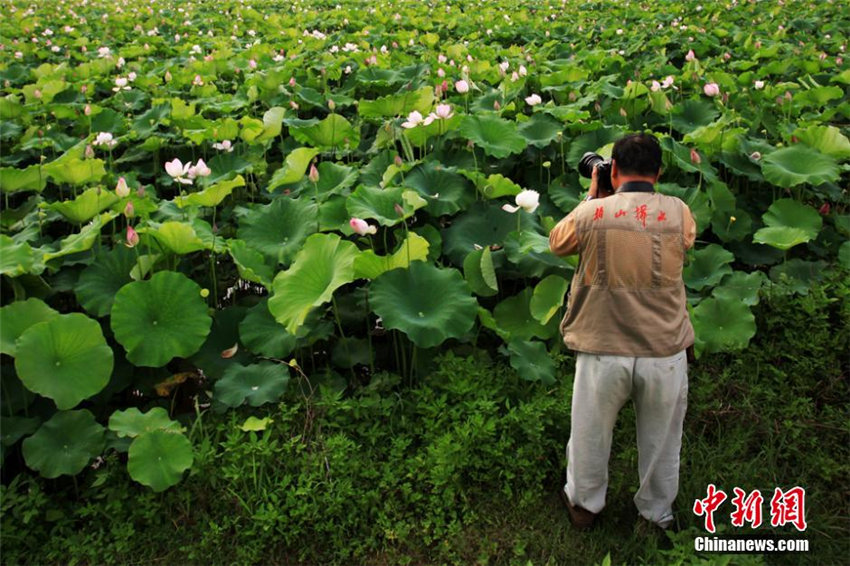 夏の盛りを迎え、広西壯(チワン)族自治區(qū)百色市平果県坡造鎮(zhèn)にある蓮の花の拠點(diǎn)では、3千ムー(1ムーは約6.67アール)にわたる蓮が満開を迎え、「接天蓮葉無窮碧、映日荷花別様紅」(天に接する蓮の葉は限りなく青く、日に映して蓮の花は格別紅い。南宋?楊萬(wàn)里の詩(shī))という美しい光景が広がっている。中國(guó)新聞網(wǎng)が伝えた。(編集YH)