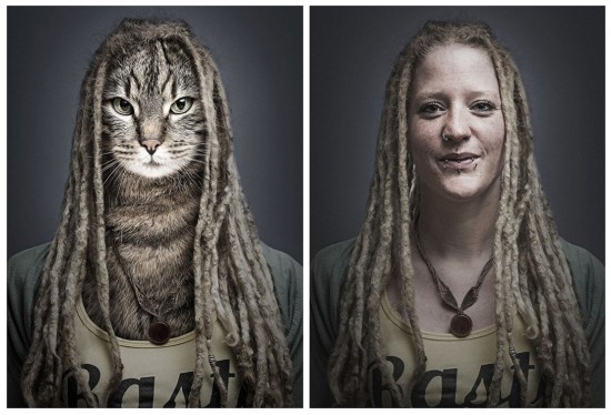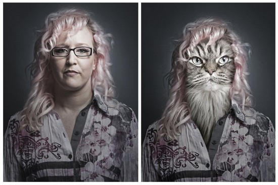 Magnagiさんによると、ネコの目に魅力を感じる彼は、友人や家族、はては見知らぬ人にいたるまで似たようなネコと飼い主の寫真を撮影し、コンピュータを使って寫真を加工して貓の顔を人間の體とつなげている。(編集YH)