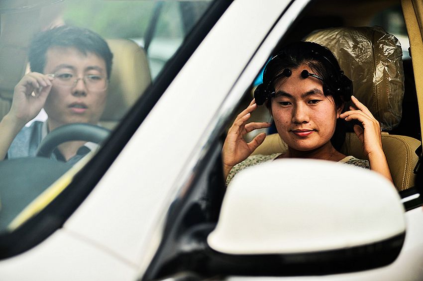 天津南開大學(xué)ロボット?情報自動化研究所の段峰準教授が率いる研究チームは3日、新たに開発した脳波による自動車制御システムをキャンパス內(nèi)で公開した。GPS、コンピュータ処理システム、車載電子制御ユニットなどを搭載した車內(nèi)で、科學(xué)者は14のセンサがついた特殊ヘルメットをかぶった。このヘルメットは脳が活動した時に発生する脳波をキャッチし、コンピュータ処理システムに報告することができる。これにより、ドアの開閉、バックミラーの調(diào)整などが可能だ。人民網(wǎng)が伝えた。