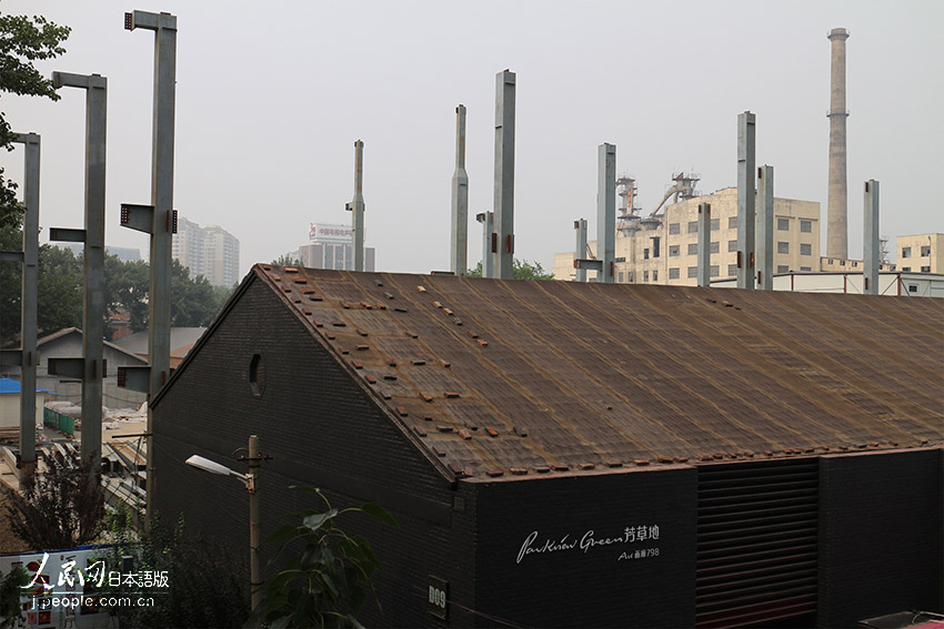 屋上テラスからは煙突や鉄柱が立ち並ぶ798蕓術(shù)區(qū)の獨特な風景が一望できる