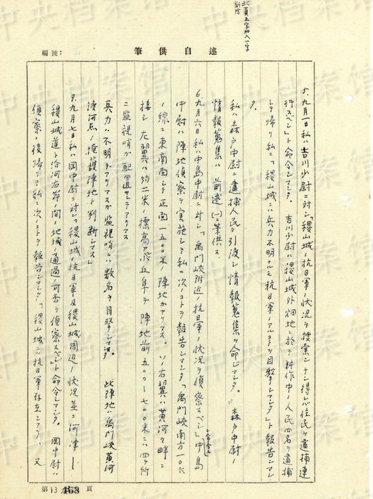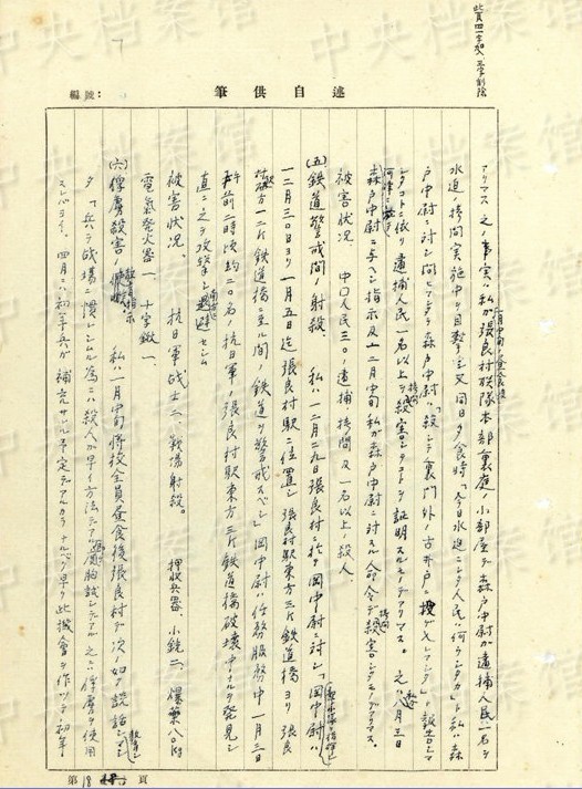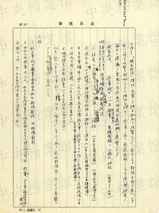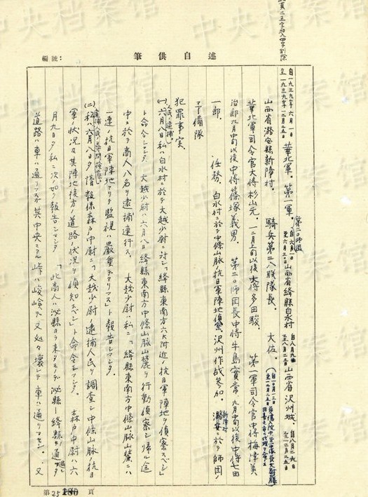 1938年8月、山西省河津で住民6人を逮捕し、これらの人々を「尋問(wèn)スルニハ拷問(wèn)、毆打等ノ方法手段ヲ使用シ殺害シマシタ」。