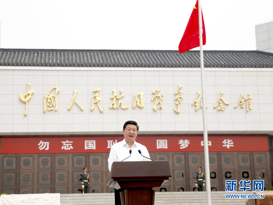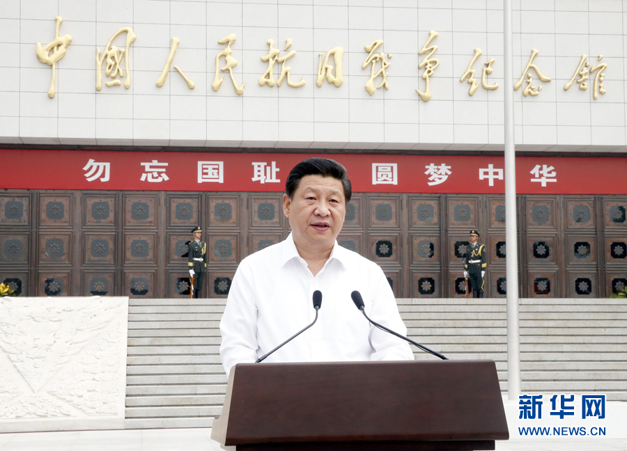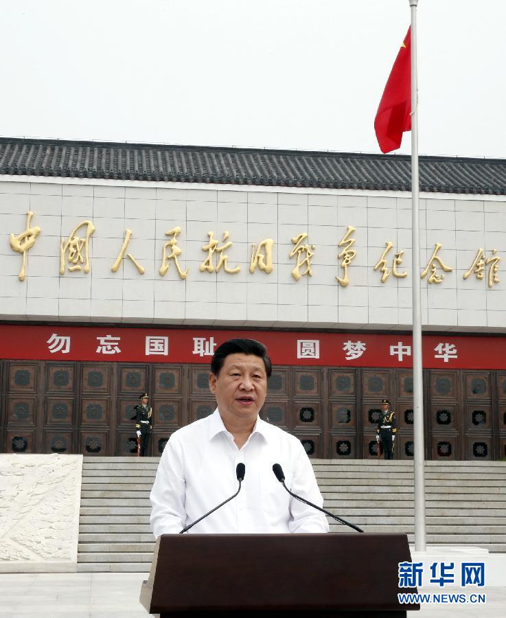 習(xí)総書(shū)記は「?jìng)ゴ螭手袊?guó)人民抗日戦爭(zhēng)は世界反ファシズム戦爭(zhēng)のアジアの主戦場(chǎng)を切り開(kāi)き、民族を危急存亡から救い、民族の獨(dú)立と人民の解放を?qū)g現(xiàn)するために、世界平和を勝ち取る偉大な事業(yè)のために、歴史の記録に光り輝く貢獻(xiàn)を果たした」と指摘。