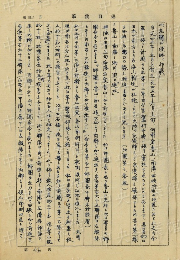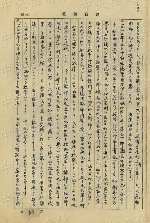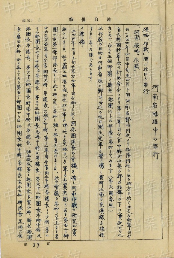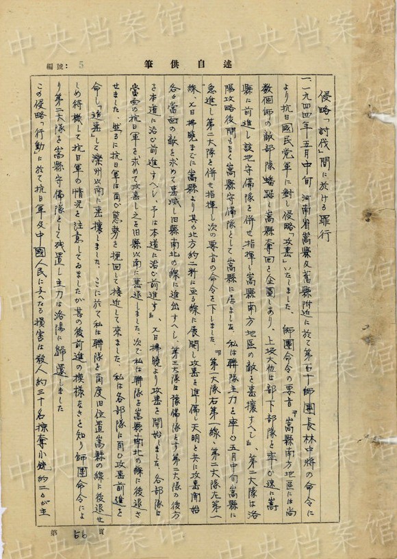 1944年5月、河南省嵩県で兵士一人が行方不明になったために「住民十?dāng)?shù)人を捕へて」「殺害五(六)人に及び十二(三)軒の家屋を焼卻したとの報(bào)告がありました」。
