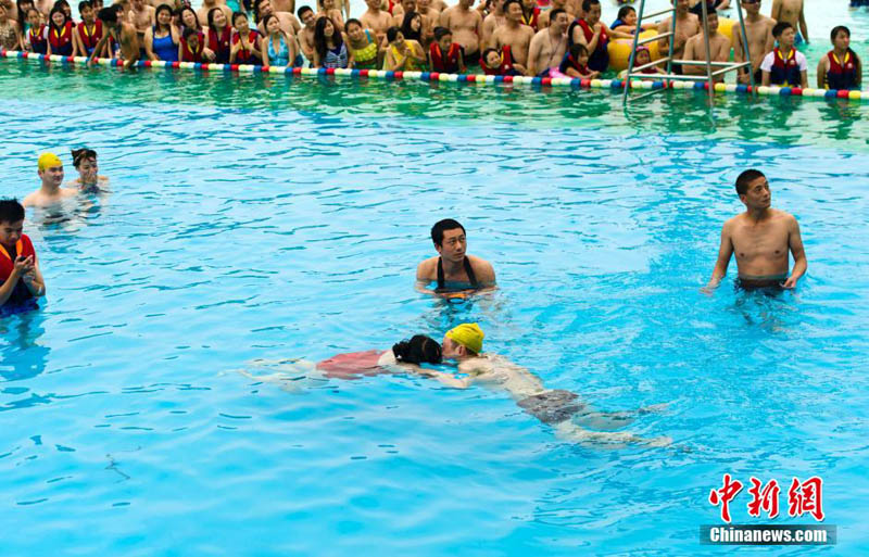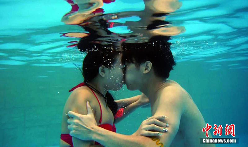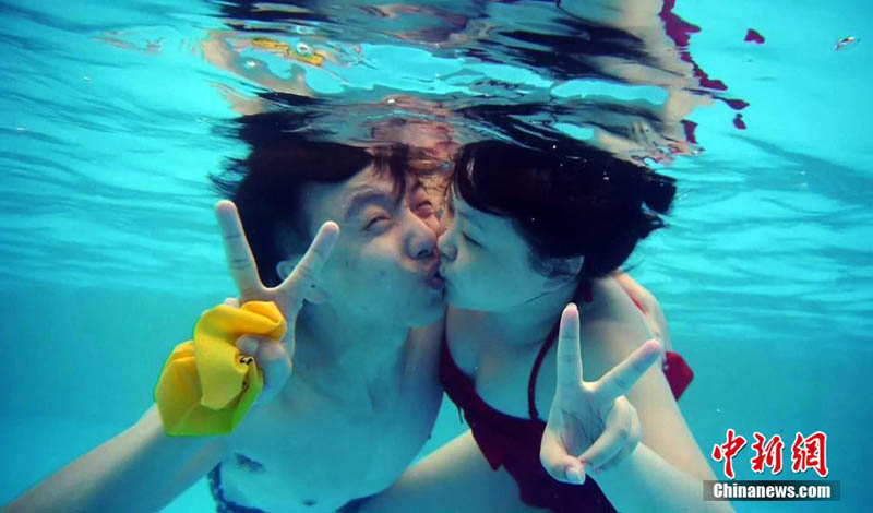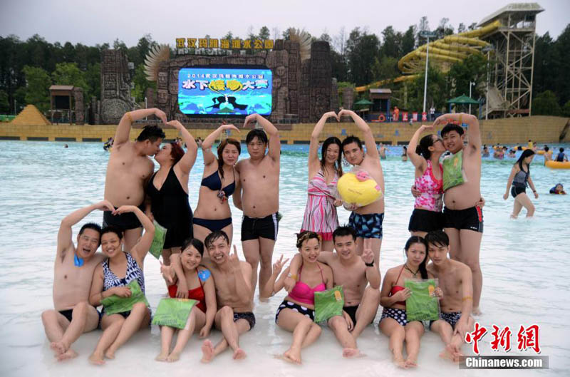 湖北省武漢市の瑪雅水公園では5日、獨(dú)特のロマンチックな水中キスコンテストが行われ、カップル8組が參加した。參加者は優(yōu)勝のためではなく、自分のキスのテクニックを披露するために參加した。中國新聞網(wǎng)が伝えた。(編集YH)