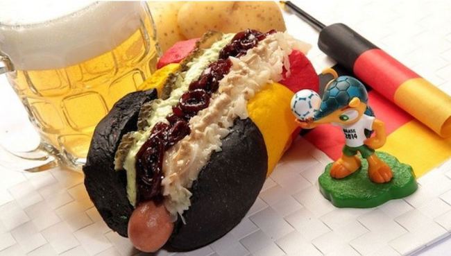 イギリスメディアの7月3日の報道によると、ブラジルのサンパウロスタジアムの外でホットドッグをよく販売している人はこのほど、新しいビジネスチャンスを発見し、ワールドカップをテーマとしたホットドッグを売り始めた。