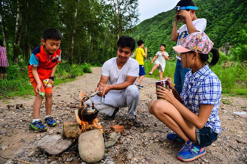 夏休みが始まった。天津のあるトレーニング機(jī)関が青少年を?qū)澫螭趣筏恳巴猊去飑`ニングのキャンプを開設(shè)し、第1期のサマーキャンプには最年少は7歳、最高は18歳までの參加者36人が申し込んだ。5日にわたって両親や快適な都會の生活から離れ、北京や天津、河北省などの山地の野外でキャンプをし、徒歩で山道を歩き、サバイバルや緊急避難などの訓(xùn)練を行う?!缚啶筏ぁ攻悭螗驻芜^程で自分の手を動かす能力や集団意識を強(qiáng)化し、意志を鍛え、成長する。新華社が伝えた。(編集YH)