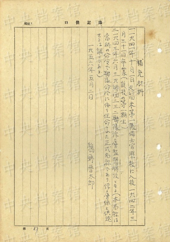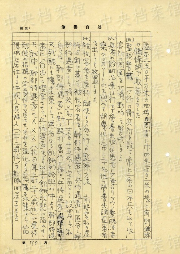 日本人戦犯7人目?鵜野晉太郎の供述書公開 「生體刺突」を命令(一)