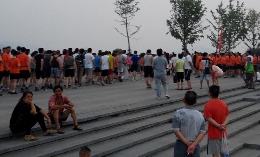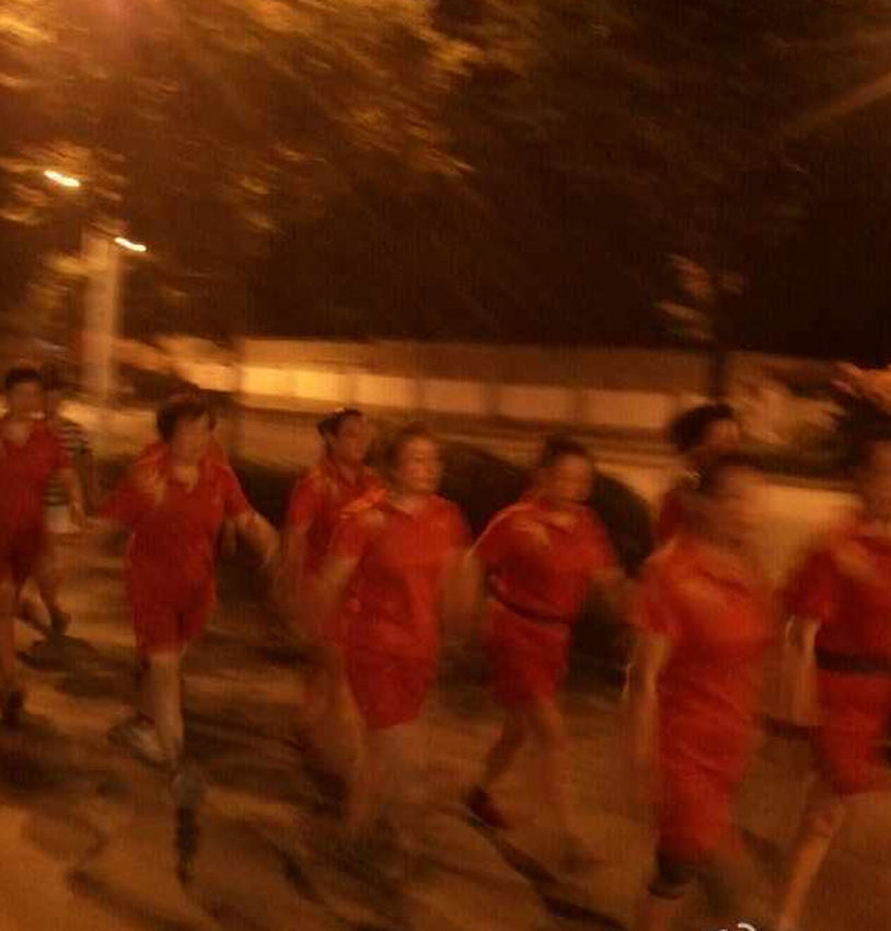 毎晩7時(shí)半になると、元々は寂しい徐州市雲(yún)竜湖珠山景勝地は賑わい始める。3人一列になってきちんと並び、おそろいの衣裝を著て大またで歩く人たちが、「広場舞」(広場で年配の女性が中心となって踴るダンス)の賑やかな音楽の下で大きな歩幅で「暴走」し、この景勝地周辺の道路を「占領(lǐng)」してしまうのだ。