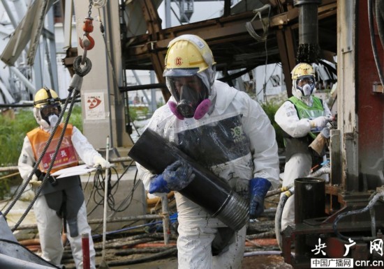 日本?福島県で現(xiàn)地時間の9日、破壊された福島第1原子力発電所近くで凍土式遮水壁を設(shè)置し、メディアに見せる東京電力の従業(yè)員。東京電力(TEPCO)は同発電所の下に巨大なパイプラインのための穴を掘り、そこを通じて冷卻剤を注入する計畫だ。冷卻材はマイナス30℃まで冷やされた塩化カルシウム溶液だ。冷卻剤が土壌を凍結(jié)し、物理的な障壁を形成して、山から流れてくるきれいな地下水と原発で漏洩した汚染された地下水が混ざるのを防止する。中國広播網(wǎng)が伝えた。(編集YH)