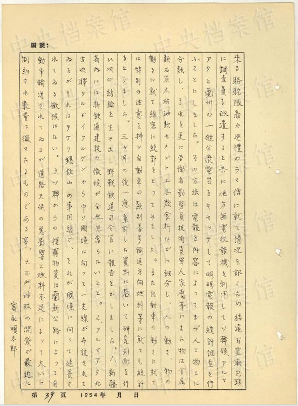 1943年10月には、,「日本人技術(shù)員を謀者として西北地域に潛入させ交通情報(bào)の蒐集を行ひました」