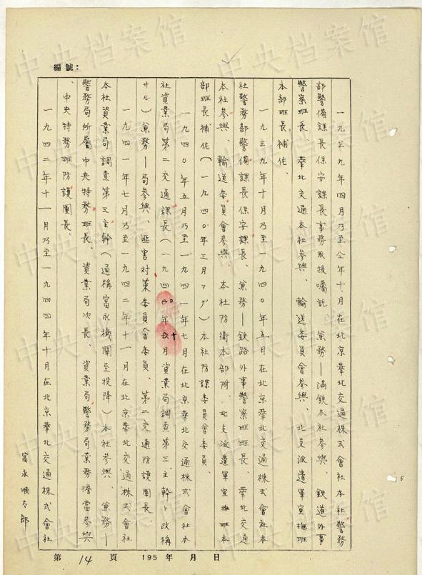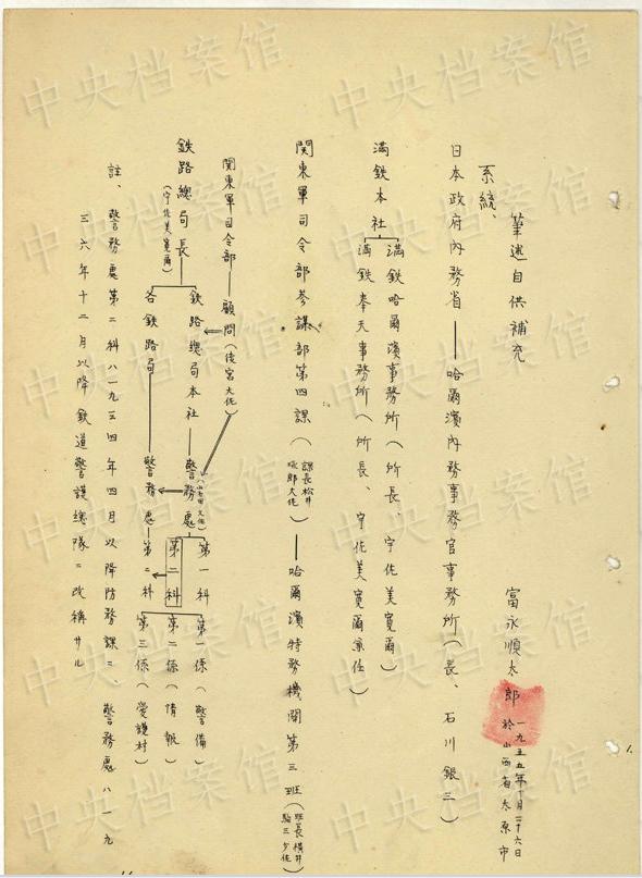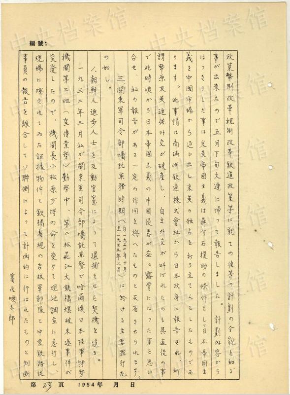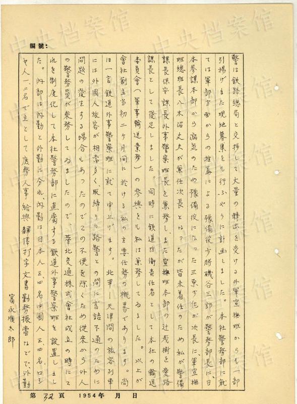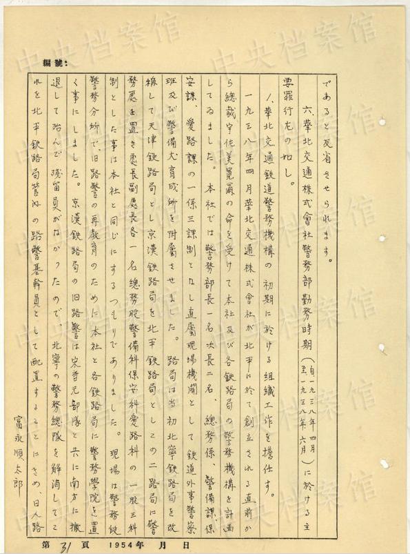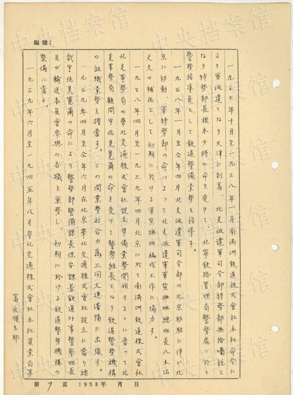 「私は一九三八年六月に資業(yè)局第二交通課長(zhǎng)に転任し」、「路警の名の下に旅客に対しては勿論一般沿線住民に対しても數(shù)限りない不法行為が行はれ、後來(lái)路警は完く人民の爪弾きを受けていた」