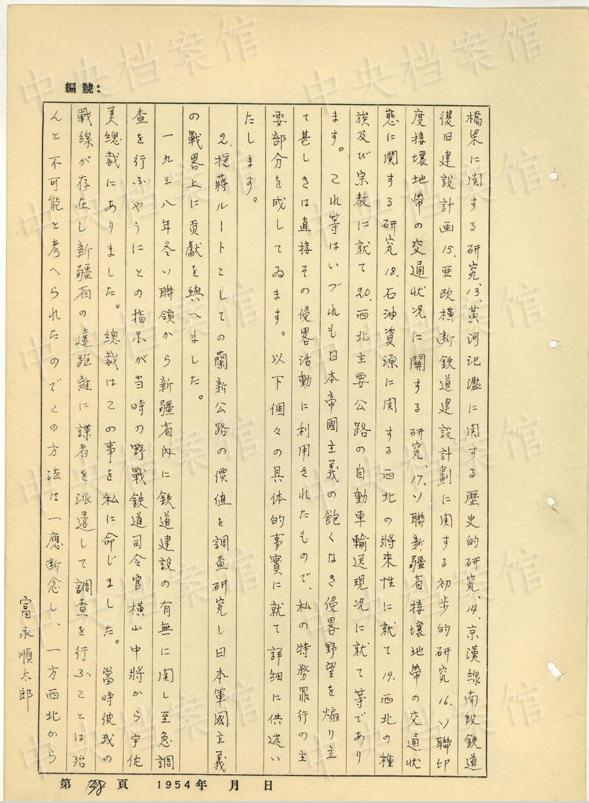 1944年には、「京漢線南段鉄道復(fù)舊工事計(jì)畫を作製して、日本軍の河南侵略作戦に協(xié)力す」(編集MA)