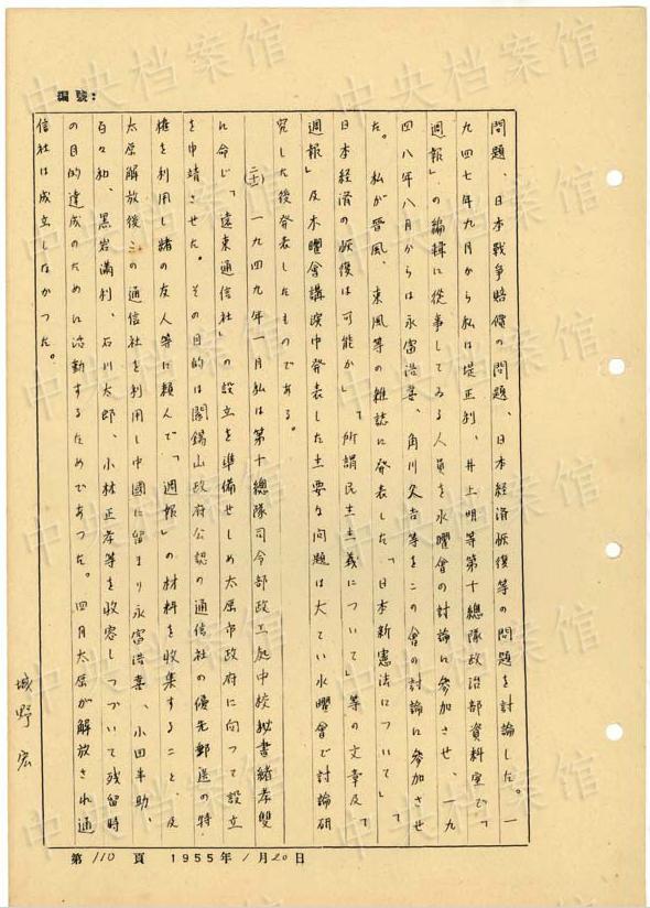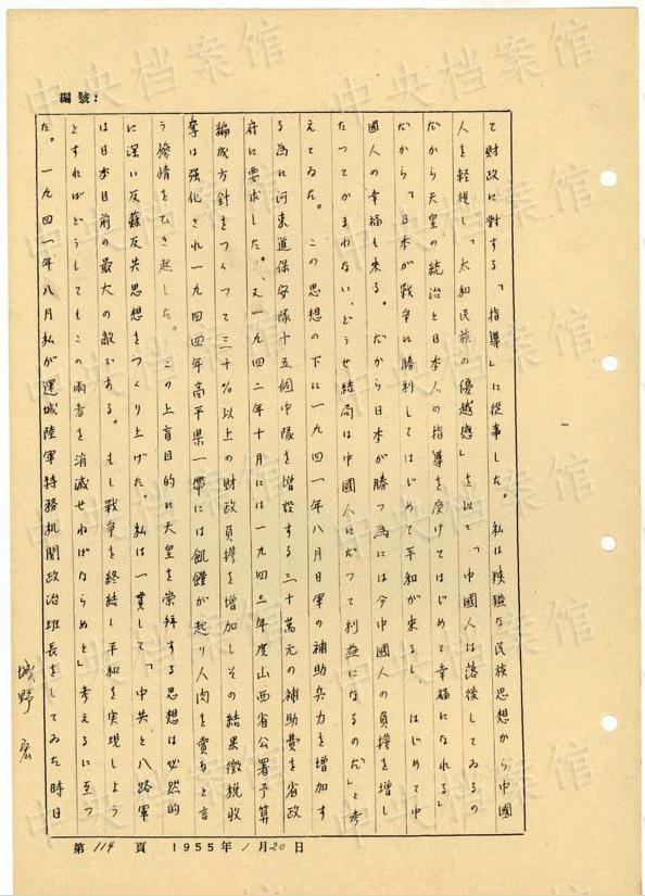 日本人戦犯10人目?城野宏の供述書公開(kāi) 解放軍に毒ガス使用(三)