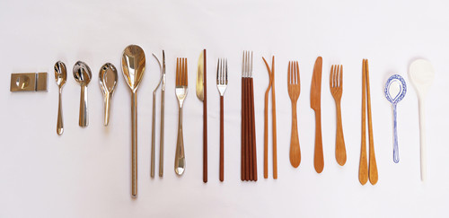 頼さんは、「2つの文化を象徴するものを作りたかった。中國と西洋の食器にはそれぞれ特徴がある。まず、持つところは西洋風(fēng)の鉄製で、先端はお箸を作るのに使う竹を使って、東洋風(fēng)にしたフォークを作った。そのほか、東洋と西洋の材料や形式、機(jī)能を組み合わせた食器もデザインした」としている。