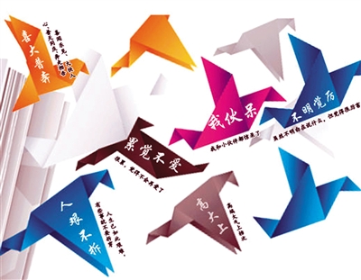 中國の教育部(?。─取艺Z言文字工作委員會はこのほど、「2013年中國語言生活狀況報告」を発表?!钢醒氚隧椧?guī)定(國家公務員の勤勉倹約の勵行等の規(guī)定)」、「PRISM事件」、「H7N9型鳥インフルエンザ」、「土豪(金遣いが荒く品のない金持ち)」、「上海自由貿易試験區(qū)」、「単獨二胎(夫婦のどちらかが一人っ子である場合、子供を二人産むことができる政策)」、「中國大媽(中國のおばさん)」、「光盤行動」(完食キャンペーン)」、「女漢子(おやじ女子)」、「十面霾伏(いたるところ煙霧だらけ)」が、同年の新語トップ10に選出された。人民日報海外版が報じた。