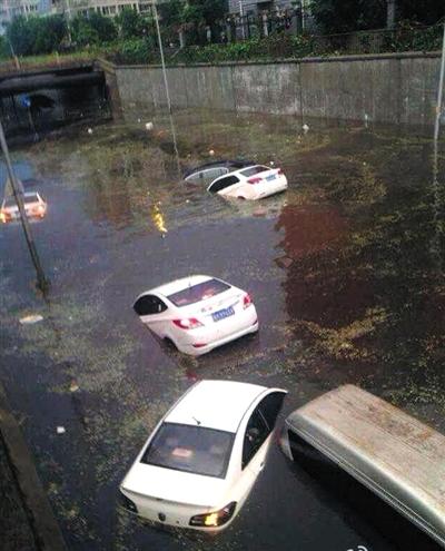 16日午後7時ごろ、豪雨の影響で、北京市海淀區(qū)田村東路鉄道橋下の道路が冠水し、自動車18臺が水沒した。新京報が伝えた。