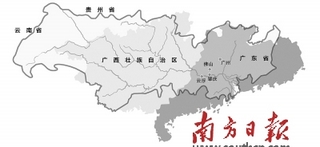 | 珠江-西江流域は長江流域に次ぐ國內で2番目の河川流域であり、広東省の4市、広西チワン族自治區(qū)の7市を通過する。川上は雲南省と貴州省の4市に通じ、流域人口は約1億2千萬人に上る。 |