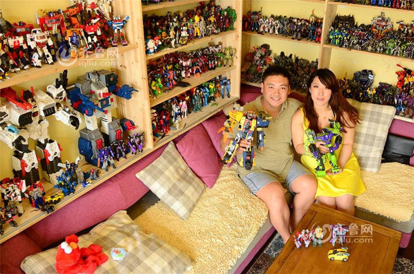 張維さんと妻の時筠婷さんは2人ともトランスフォーマーの熱狂的なファンだ。彼らの家のリビングは、ソファーやテーブルなどの家具を除き、他の空間は全てトランスフォーマーに占領(lǐng)されている狀態(tài)だ。中國新聞網(wǎng)が伝えた。