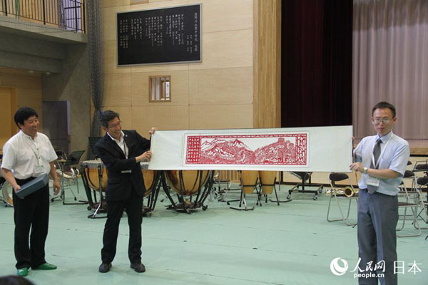 日本側(cè)の學(xué)校に中國(guó)側(cè)からプレゼントを贈(zèng)呈