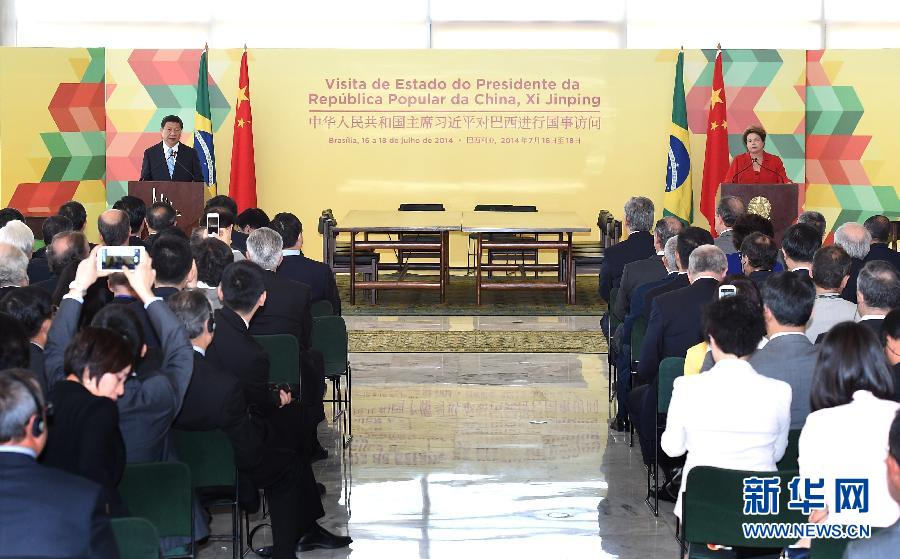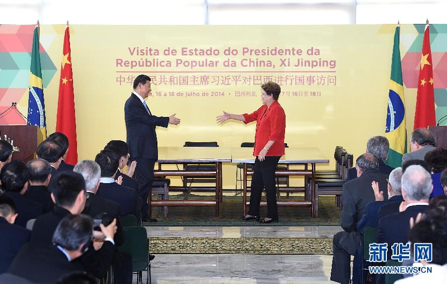初のブラジル公式訪問を行っている中國の習(xí)近平國家主席は17日、ブラジリアでブラジルのルセフ大統(tǒng)領(lǐng)と首脳會談を行い、ともに両國の協(xié)力文書の調(diào)印式に出席した。中國新聞網(wǎng)が報(bào)じた。