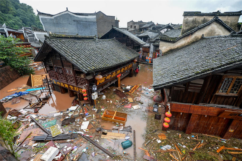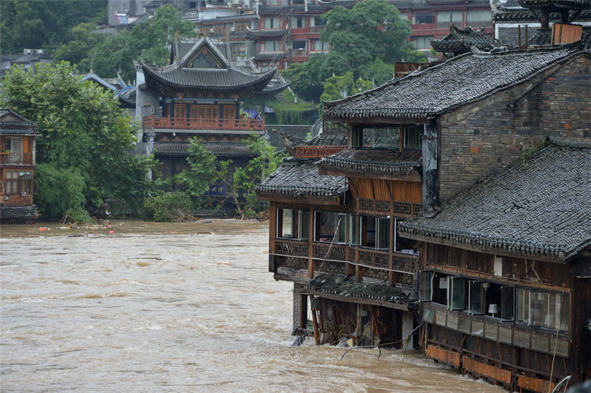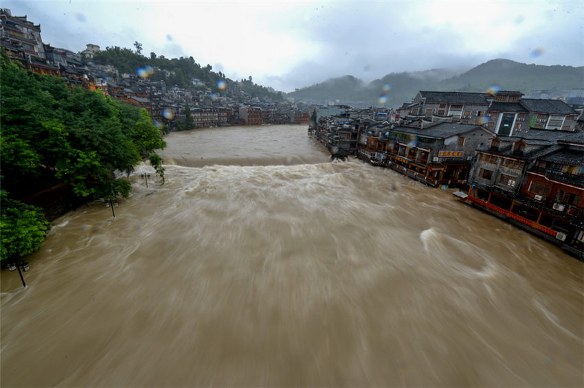 気象?水文部門のモニタリングによると、降水の影響で湖南省の四大水系のうち沅水、資水の本流と市中で水位が大幅に上昇している。そのうち、沅水の支流、沱江鳳凰附近では増水で水位が307.14メートルに達し、これまでの史上最高の水位を1.24メートル上回った。(編集YH)