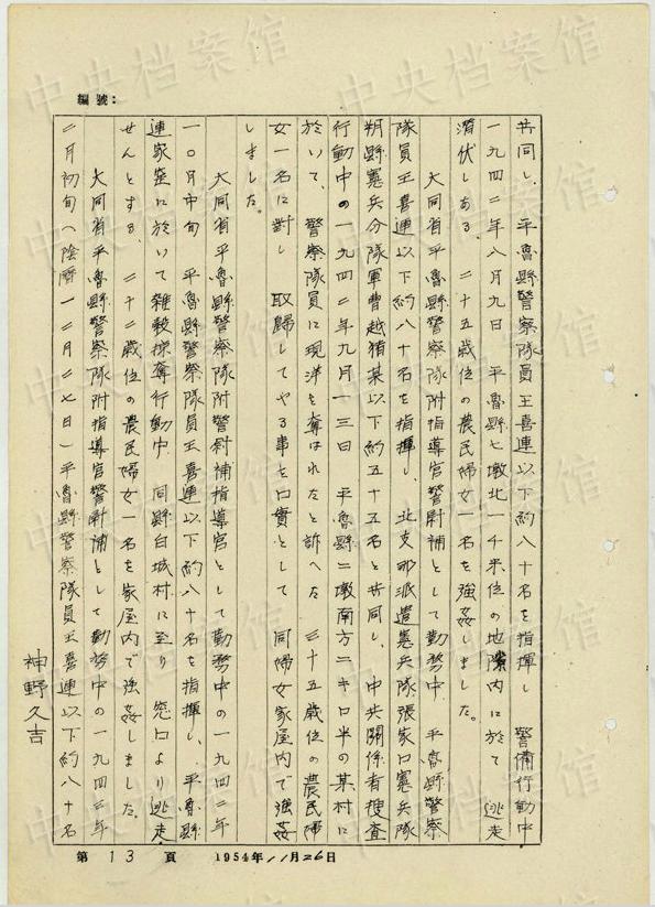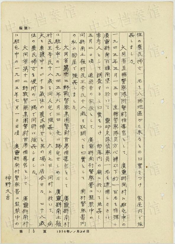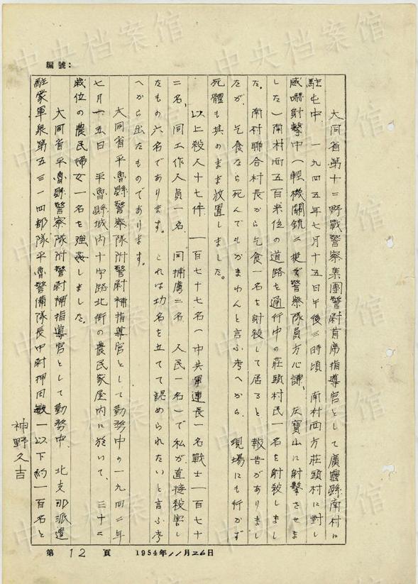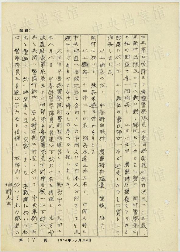 日本人戦犯17人目?神野久吉の供述書 女性多數(shù)を強(qiáng)姦(二)