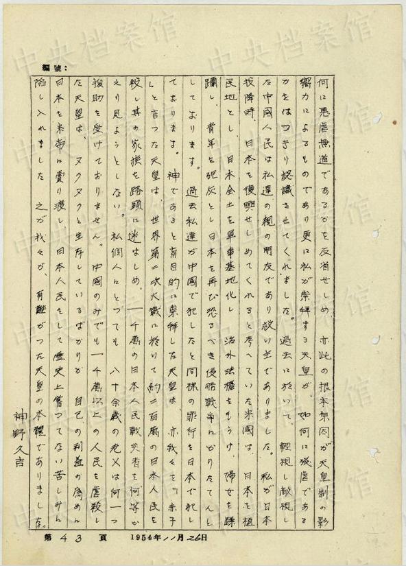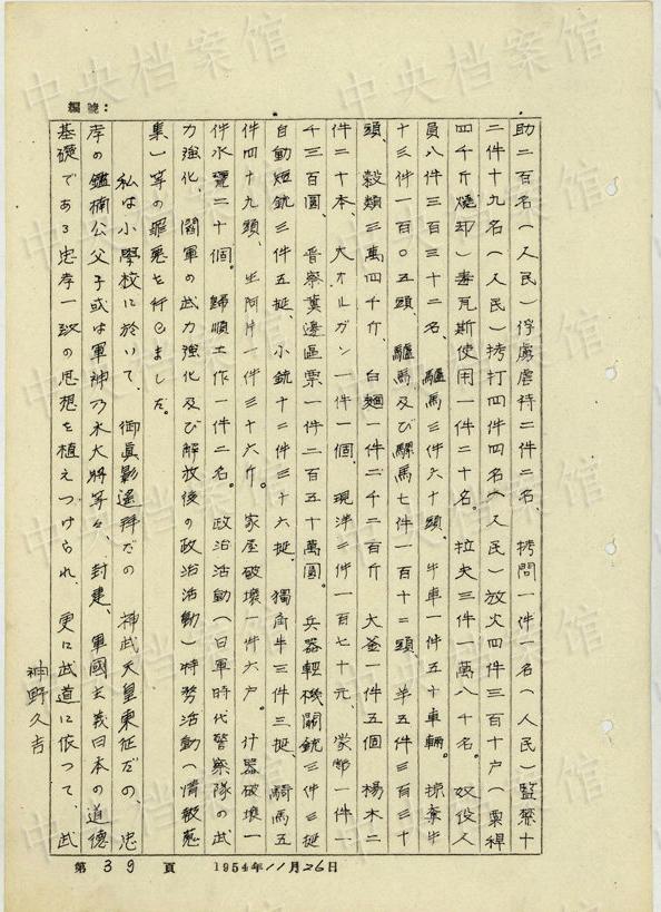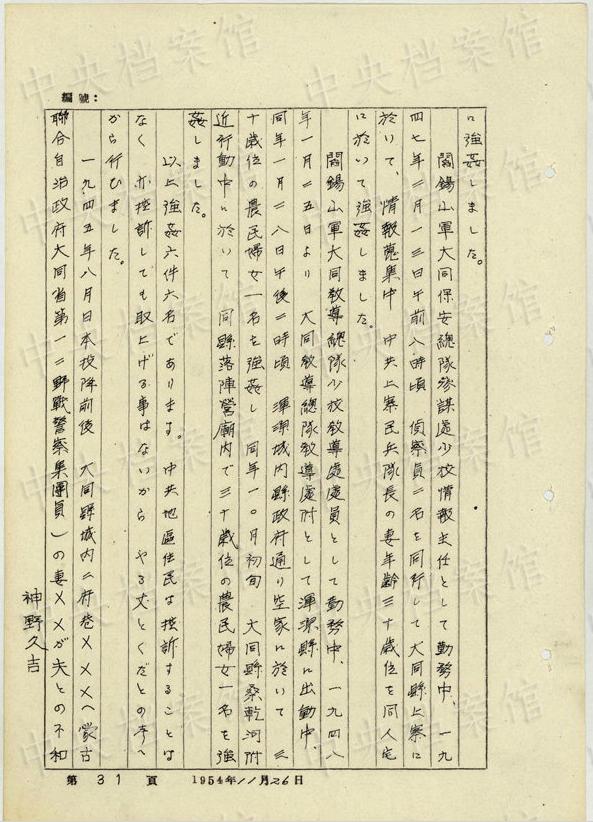 日本人戦犯17人目?神野久吉の供述書 女性多數(shù)を強(qiáng)姦(一)