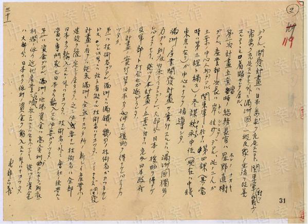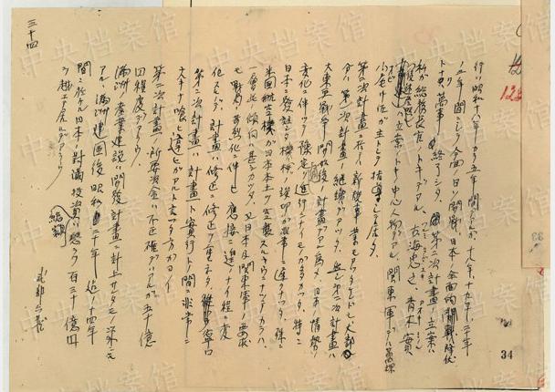 「昭和十四年ニ第一次計畫ヲ修正シテ其ノ規(guī)模ヲ擴張シタ」「之モ日本政府及軍部ト相談シテ作成サレタモノデアル。此ノ當時ノ立案ノ中心人物ハ當初計畫ト同様、星野、岸等デアツタ」。