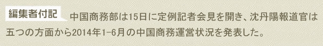 沈報(bào)道官は、「上半期の中國(guó)消費(fèi)市場(chǎng)の運(yùn)営は全體として安定していた。商務(wù)部が重點(diǎn)小売企業(yè)5千社に対して行ったモニタリングによると、1-6月の売上高は前年同期比6.3%増加し、増加率は1-5月を0.1ポイント上回った」と述べた。