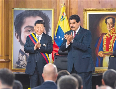 習近平國家主席は20日にカラカスで、同國政府を代表するベネズエラのマドゥロ大統(tǒng)領から「解放者」勲章を授與された。