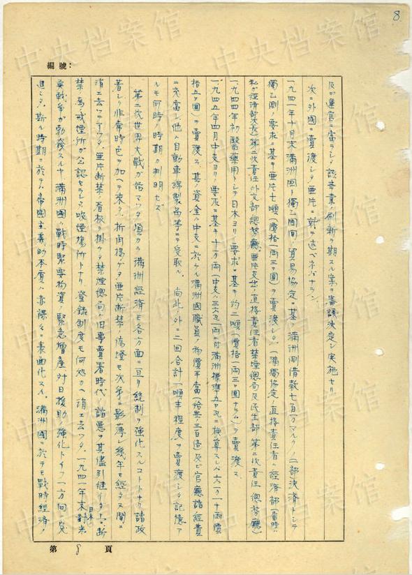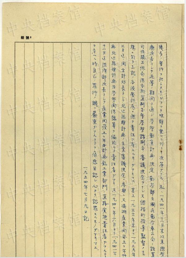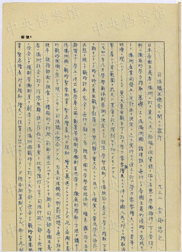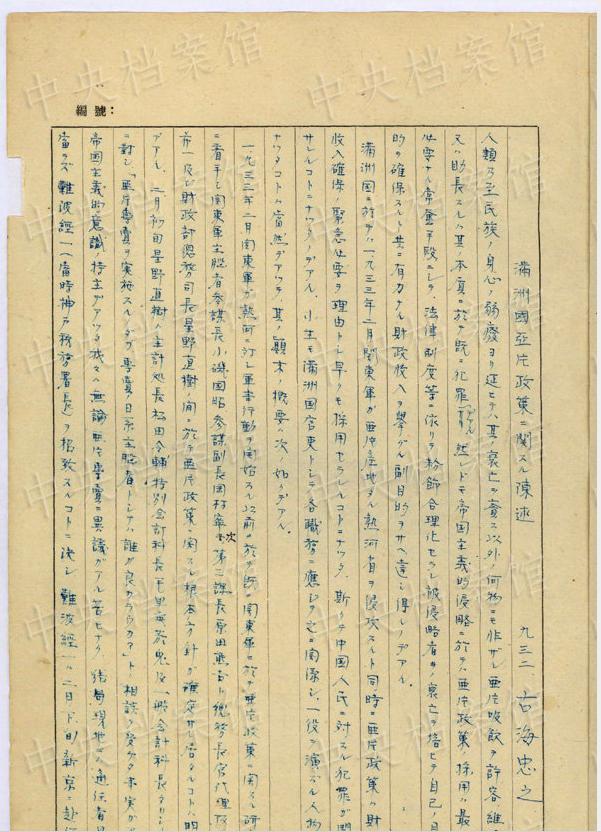 古海忠之の1954年3月の供述書によると、古海は1900年東京生まれ。1932年7月に中國侵略戦爭に加わり、偽満州國國務(wù)院総務(wù)庁主計処特別科長、処長、経済部次長、総務(wù)庁次長兼企畫局局長などを歴任した。