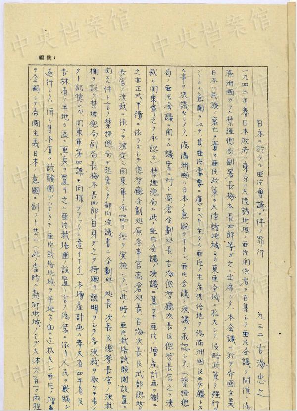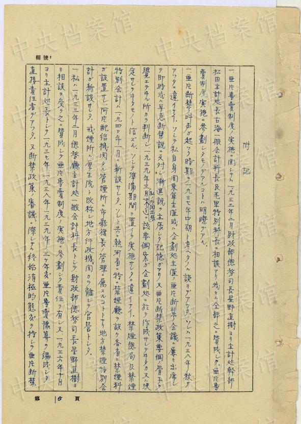 1937年10月、「阿片斷禁十ケ年計畫ニ関スル関東軍及企劃処主催ノ屢々ノ會議ニ出席シテ之ヲ?qū)徸hシ斷禁緩和策ヲ講ジ右案ノ決定ニ賛ス」。