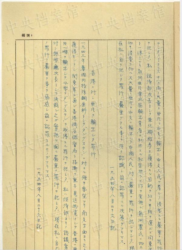 日本人戦犯19人目?古海忠之の供述書 華中汪政権にアヘン10萬両販売(二)