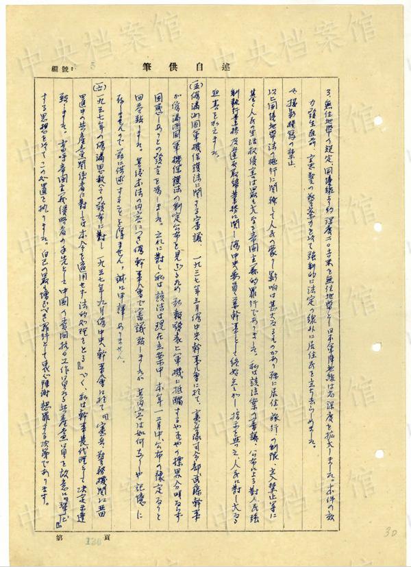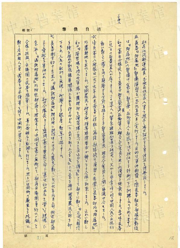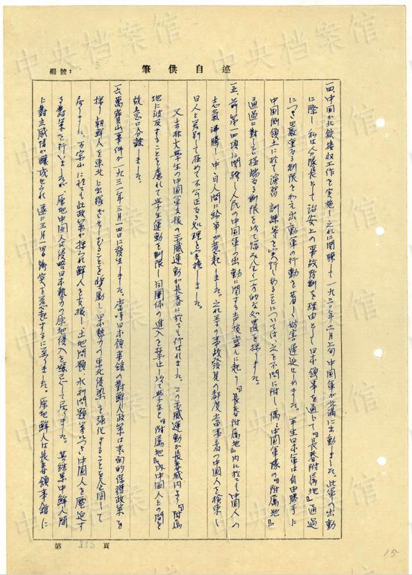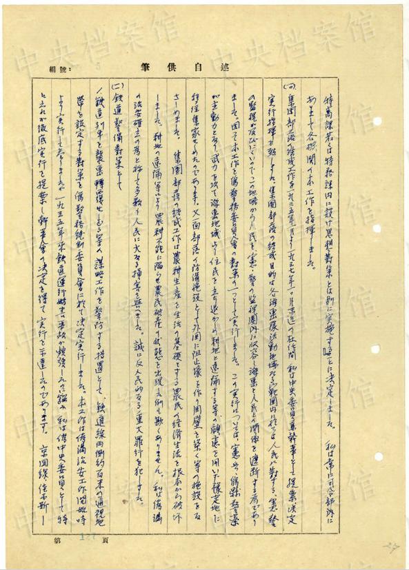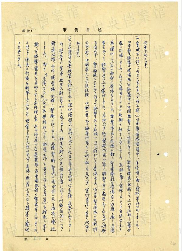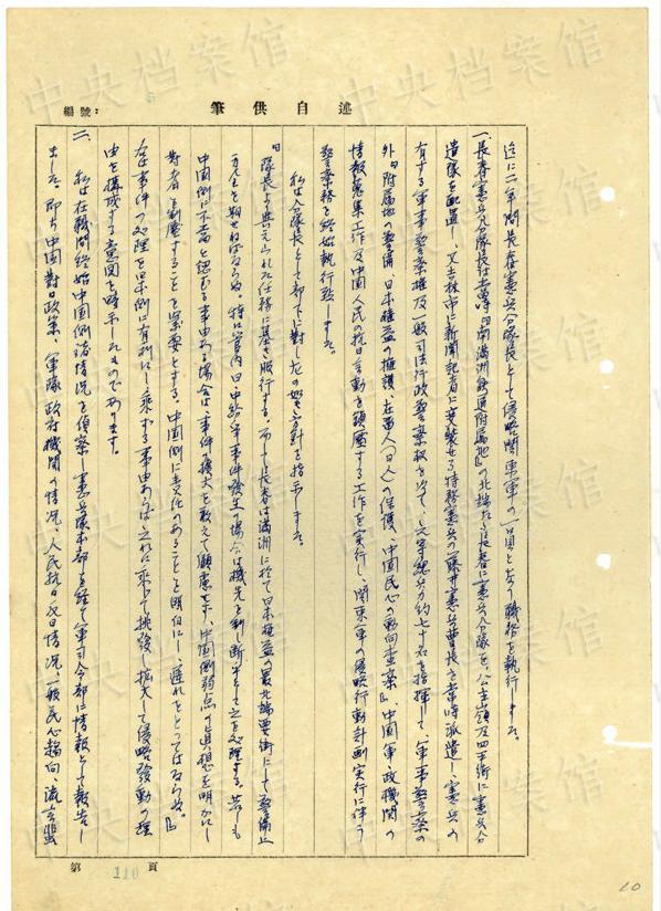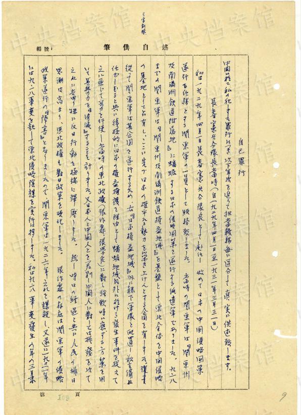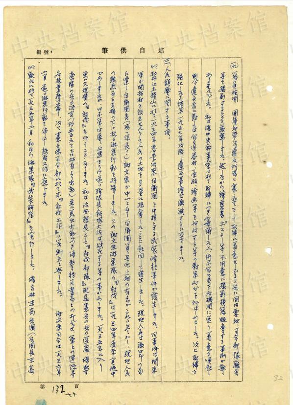 1941年6月~1942年6月、「私は派遣軍憲兵隊長として命令を以て約三回に亙り廣東憲兵隊をして同隊の検擧したる中國人民を『嚴重処分』として『集體屠殺(銃殺)』せしめました」「約一二〇名に達し」た。(編集NA)