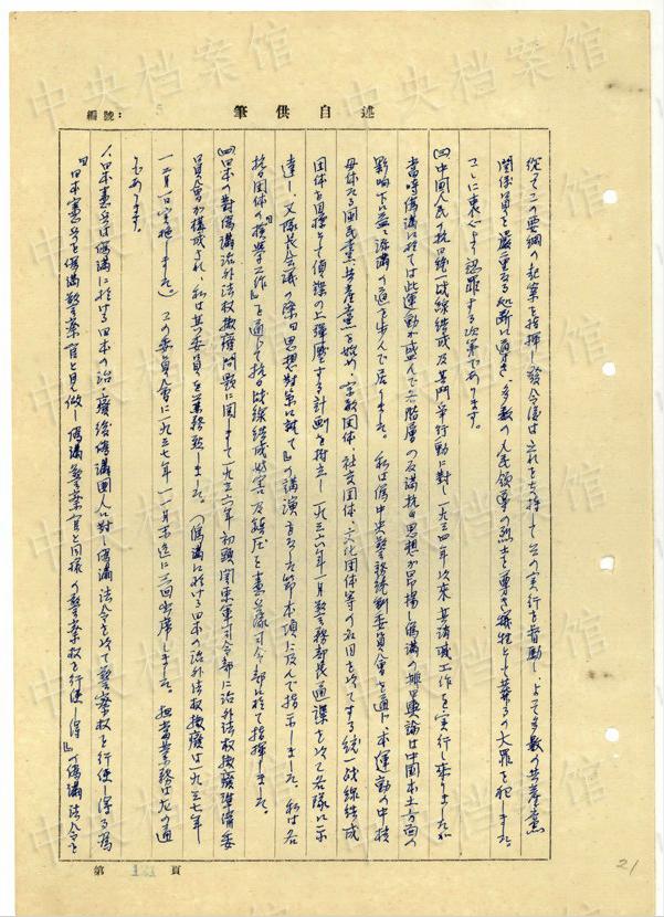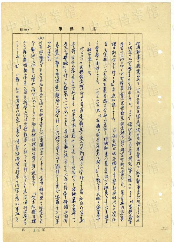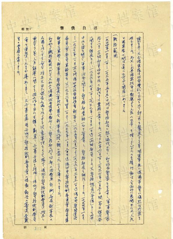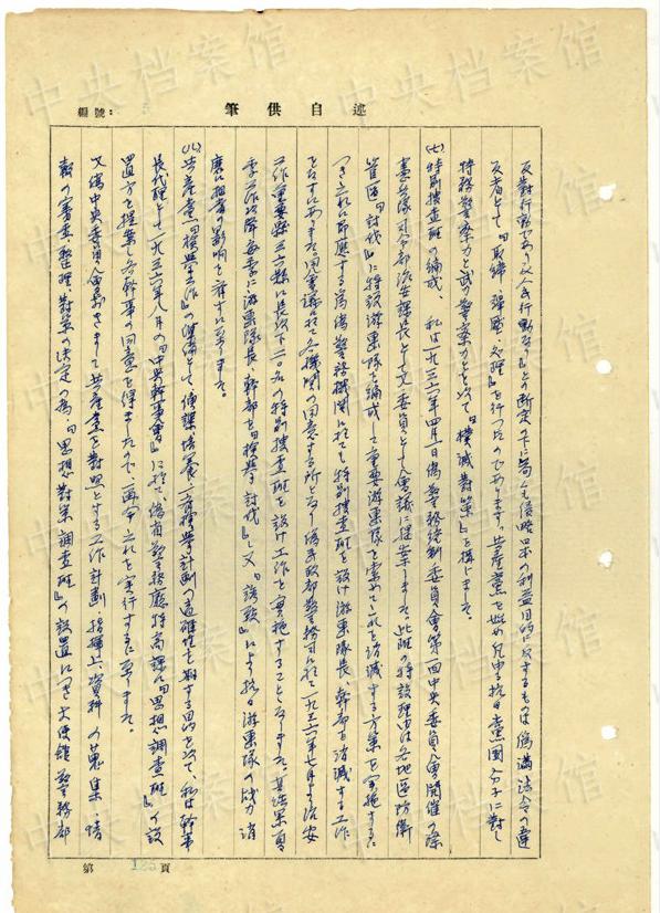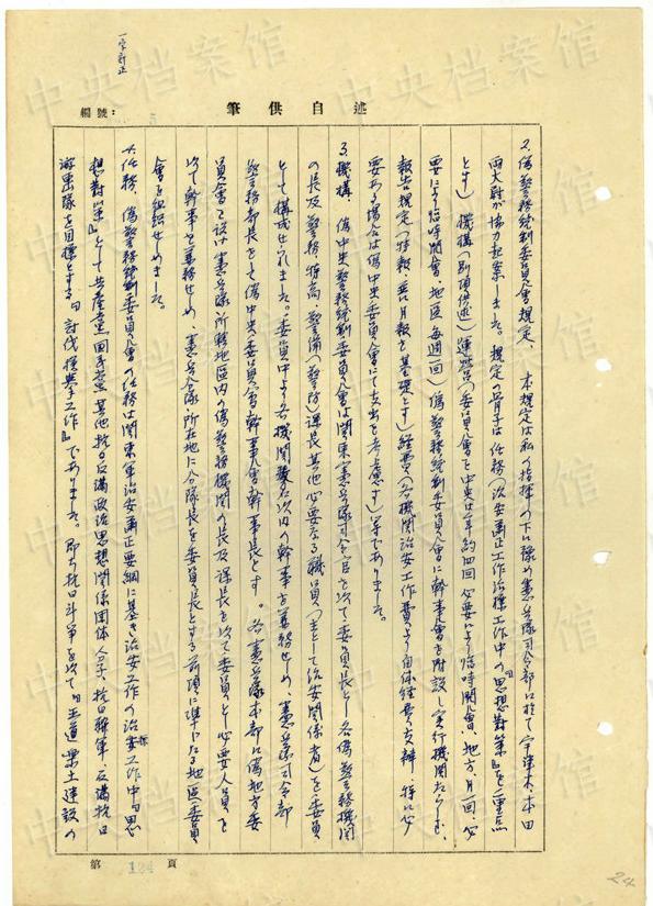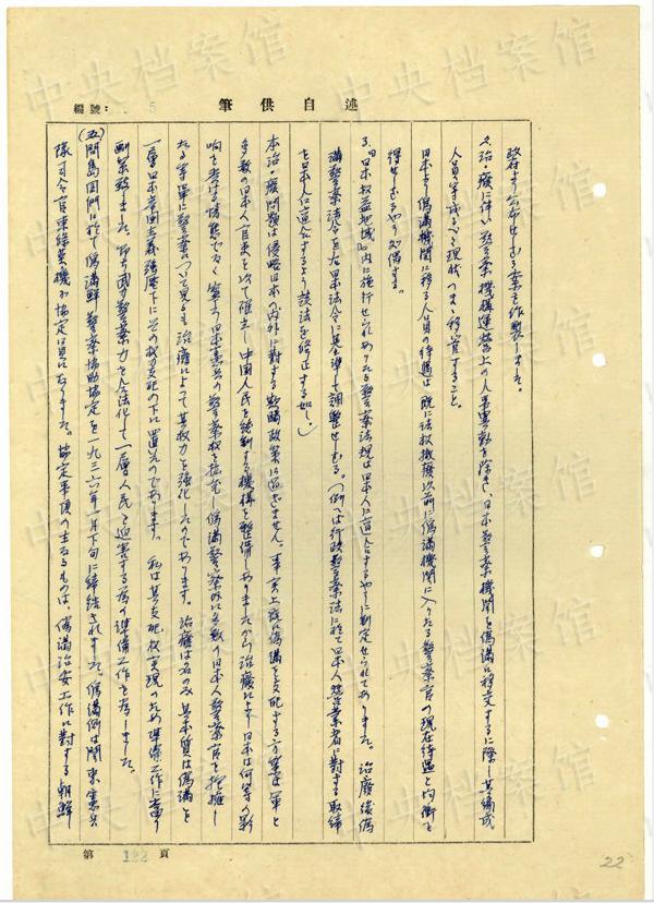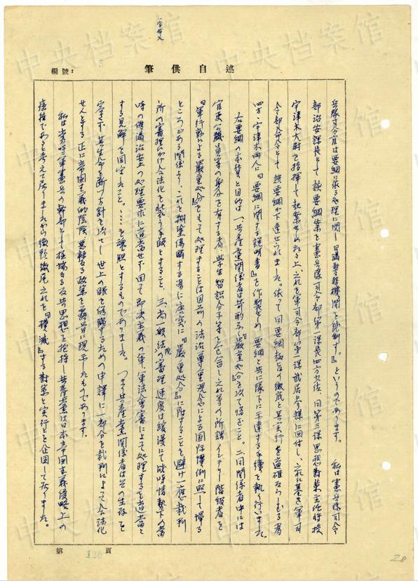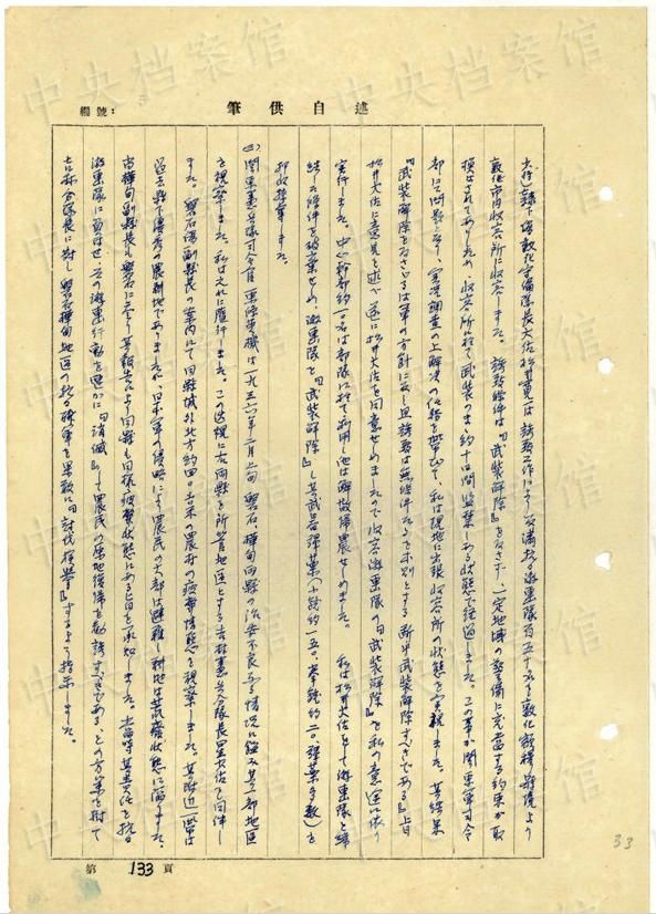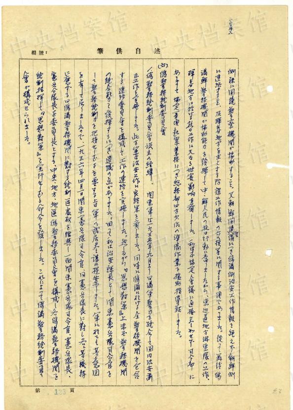 1941年6月~1942年6月、「私は派遣軍憲兵隊長として命令を以て約三回に亙り廣東憲兵隊をして同隊の検擧したる中國人民を『嚴重処分』として『集體屠殺(銃殺)』せしめました」「約一二〇名に達し」た。(編集NA)