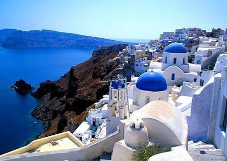 白と青の建物が見事なコントラストを作り上げているギリシャの島?サントリーニ島では、挙式やハネムーンに訪れるカップルが増加している。ここは、「世界で一番美しい夕日が見られる場所」と言われ、晝間は澄んだ青い空が広がる。本島を含めた5つの島々からなるサントリーニ島には、火山の影響から黒い砂浜のビーチや赤い砂浜のビーチなどがある。ここでは、心地良い太陽の光、青い空、青い海を堪能できる。