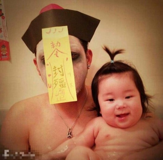 日本のある父親と娘のユーモラスな入浴姿がインターネットで話題を集めている。寫真では父親が入浴時に顔に様々な仮裝をほどこして幼い娘と寫っており、可愛らしくユーモラスだ。中國娯楽網(wǎng)が伝えた。(編集YH)
