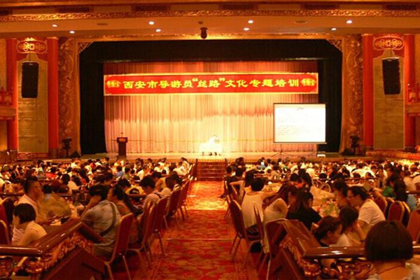 現(xiàn)在、中央テレビの「百家講壇」の講演者、王雙懐教授が「シルクロードの歴史と原狀」というタイトルで西安の観光ガイド600人余りを?qū)澫螭衰伐毳愆`ドをテーマにする研修を行なっている。(編集YH)