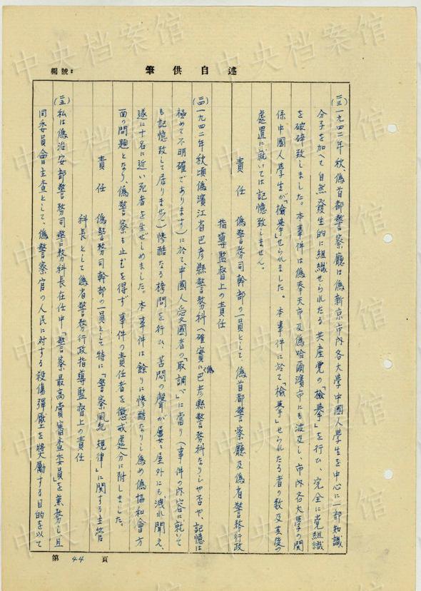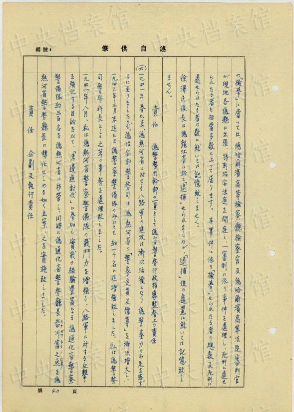 日本人戦犯?三宅秀也の1954年8月から1955年4月の供述書(shū)によると、三宅は1902年に日本の兵庫(kù)県で生まれ、偽満洲國(guó)熱河省警務(wù)庁警務(wù)科科長(zhǎng)と偽奉天省警務(wù)庁庁長(zhǎng)を務(wù)めた。