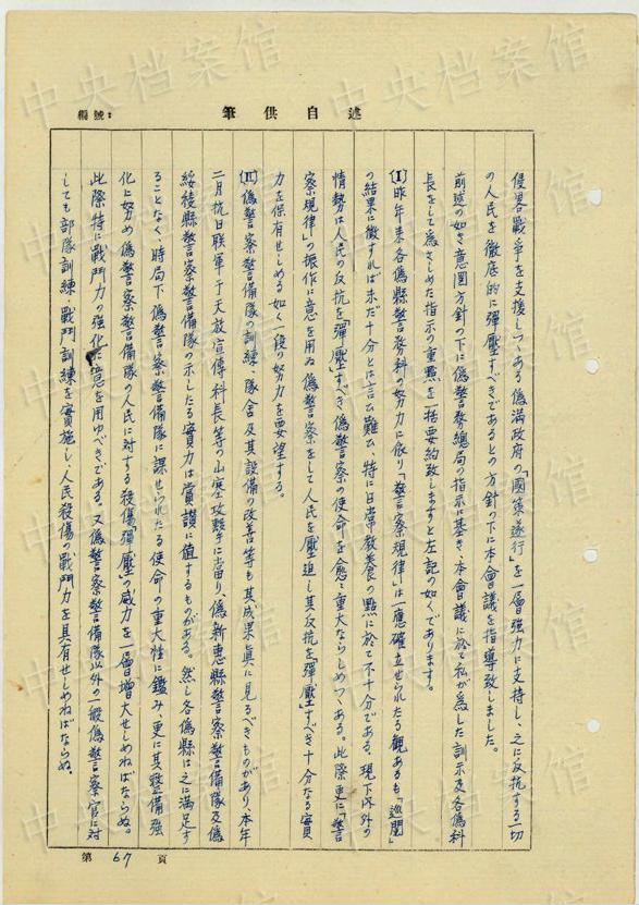 1936年には、偽熱河省と偽錦州省で共産黨員や反満抗日思想を有する中國(guó)愛(ài)國(guó)者ら7066人を検挙し、「內(nèi)一五〇名を『厳重処分』(死刑)に附して居ります」