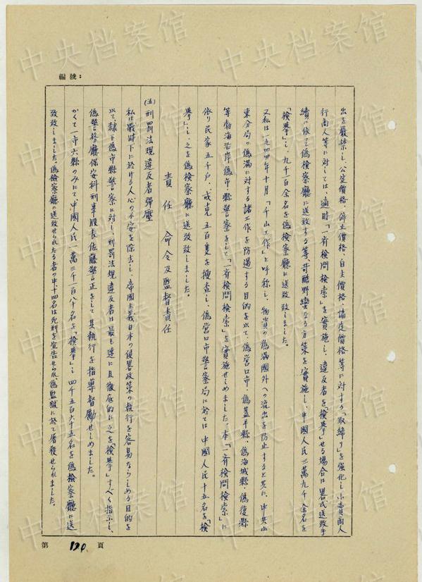 1936年には、偽熱河省と偽錦州省で共産黨員や反満抗日思想を有する中國(guó)愛(ài)國(guó)者ら7066人を検挙し、「內(nèi)一五〇名を『厳重処分』(死刑)に附して居ります」