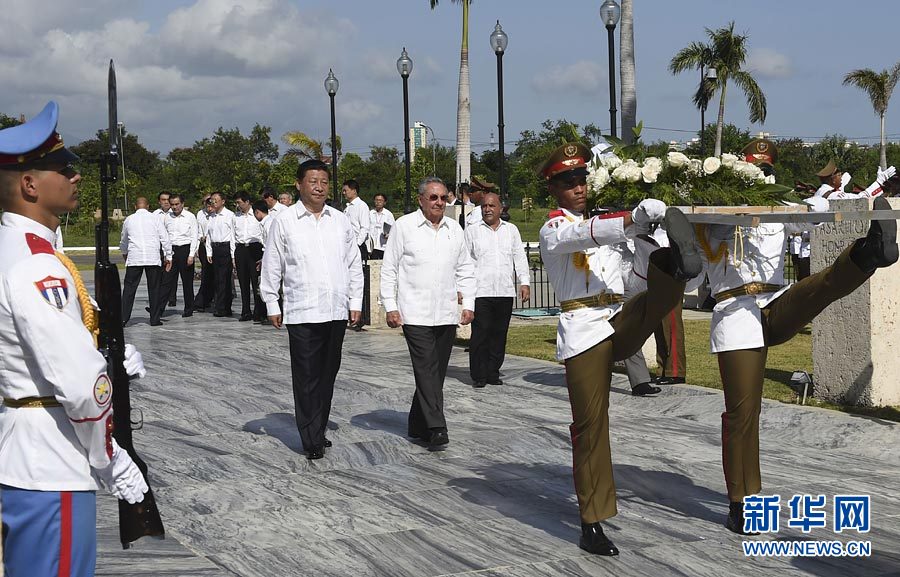 習(xí)主席はまず、キューバ革命の烈士多數(shù)が永眠するサンタ?エフィへニア墓地でホセ?マルティの墓に獻(xiàn)花した。革命烈士記念壁の前では、カストロ議長(zhǎng)から烈士たちの英雄的事績(jī)について説明を受けた。習(xí)主席は続いてモンカダ兵営跡地を見學(xué)。1953年7月26日にフィデル?カストロが青年革命家たちを率いて襲撃し、キューバ革命の火ぶたを切った場(chǎng)所だ。