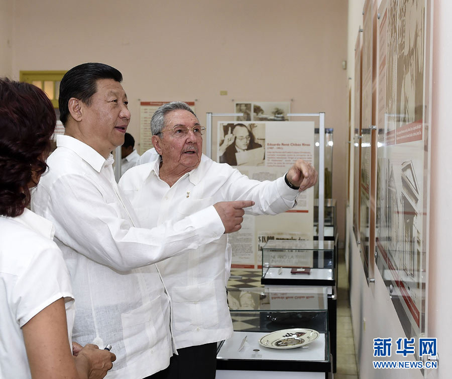 習(xí)主席はカストロ議長(zhǎng)と共にモンカダ兵営跡博物館を見學(xué)。カストロ議長(zhǎng)から闘爭(zhēng)の道程について説明を受けた。習(xí)主席は度々足を止めて展示に見入り、詳しく質(zhì)問した。