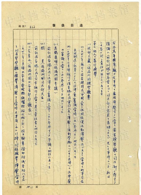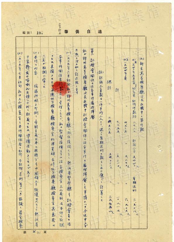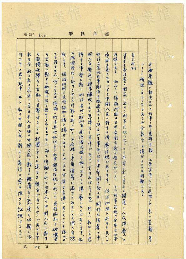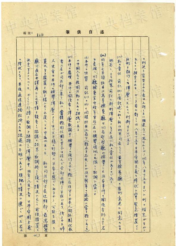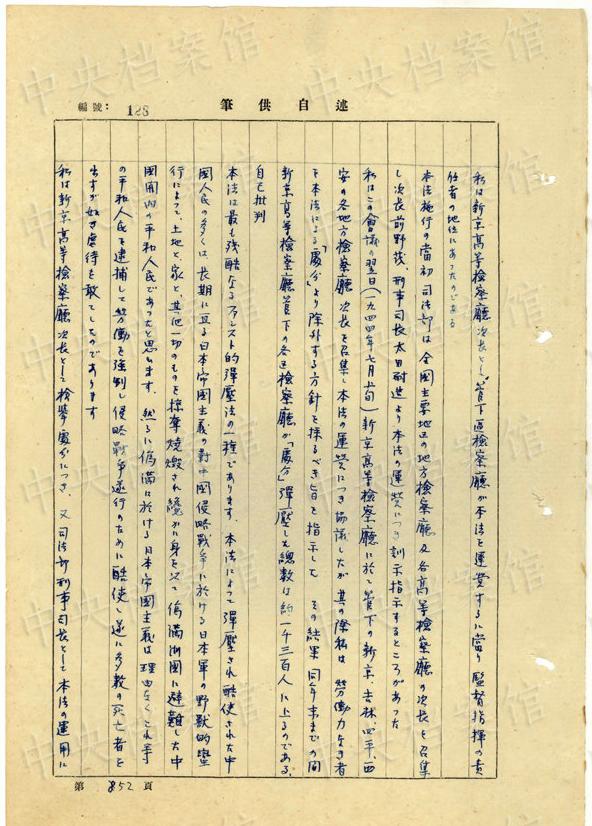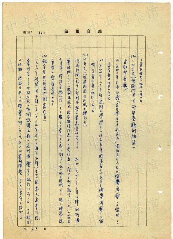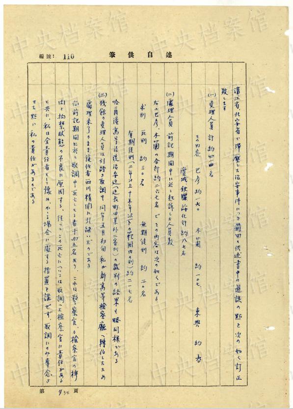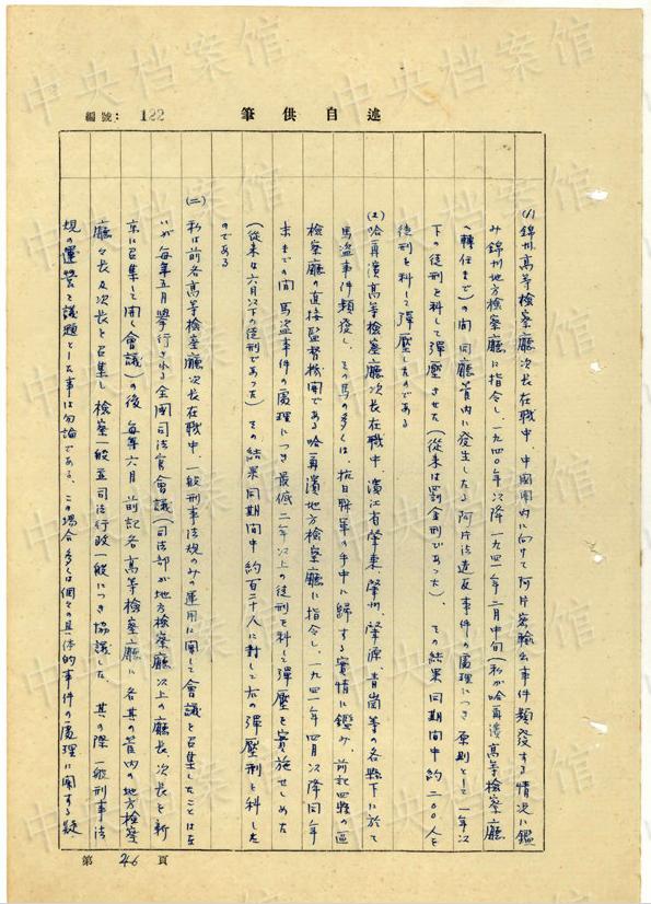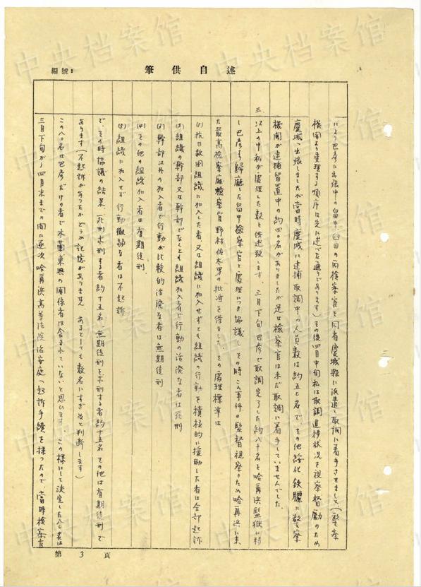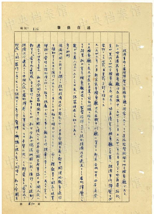 1938年5月から1939年5月まで、「私が思想科長在職中(中略)治安事件として中國人民を処罰弾圧した數(shù)は一九三八年五?六月頃哈爾濱高等検察庁及法院が処理した約四十名(中略)を初めとし合計約三百名である」