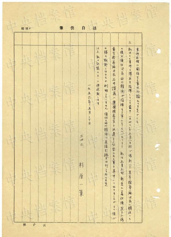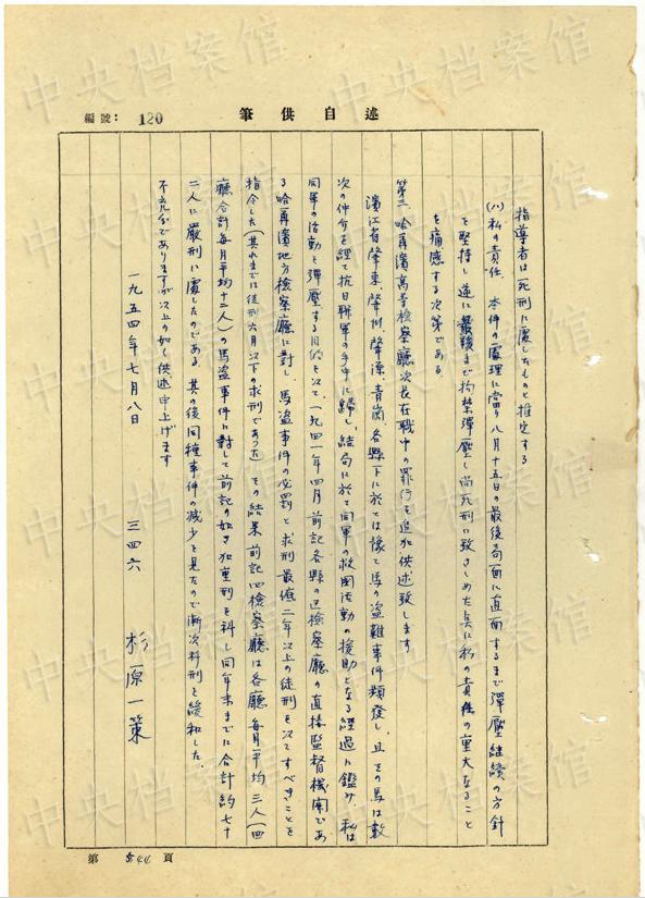 日本人戦犯24人目?杉原一策の供述書公開 3萬人以上を処刑?弾圧(一)